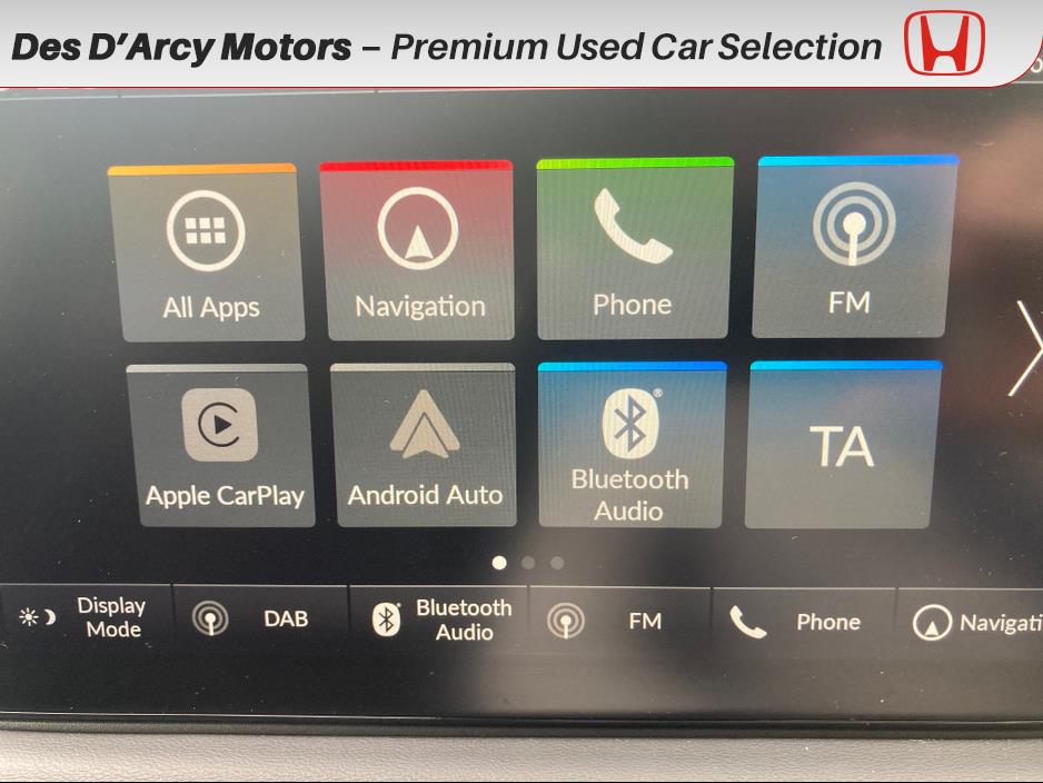 Des D'Arcy Motors Main Honda Dealer For Over 30 Years Premium Used Car Selection, If you would like to view this vehicle please phone ahead and we will have it ready for you. Balance of manufacturer warranty. Free Nationwide delivery available. Central Locking, Electric Windows, Airbag, Cruise Control, Fog Lamps, Rear Spoiler, Privacy Glass, Centre Armrest, Multi-function steering wheel, Satellite Navigation, Traction Control, Anti-Theft System, Parking Sensors, Bluetooth, Isofix, Apple Car Play, Android Auto, Active Safety Braking / City Brake / Collision Alert, Stop/Start Button, External Devices Connectivity, Cup holders, Stability control